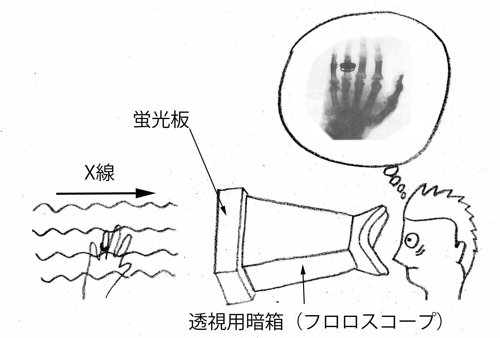 ウィルヘルム・レントゲンは思わず身震いした。彼にとって身の毛のよだつ恐ろしい光景であった。生きた組織の中にある彼自身の骨が長いお化けのよう な黒い陰影を投げかけていたのである。重々しい疑惑と素直な驚愕とが頭の中でせりあっていた。レントゲンは突然実験を止めた。少し前までは、学者仲間の目 に、偉大ですばらしい名声が約束されているように思われたものが、悲惨な悪評に変わってしまうかも知れなかった。彼は物理学者としての責任をとらされて、 排斥され、全く破滅することもあり得た。」(『レントゲンの生涯』W.Robert Nitske、P79)